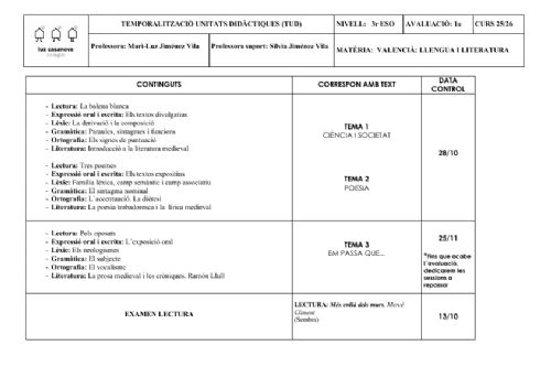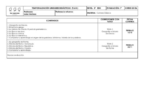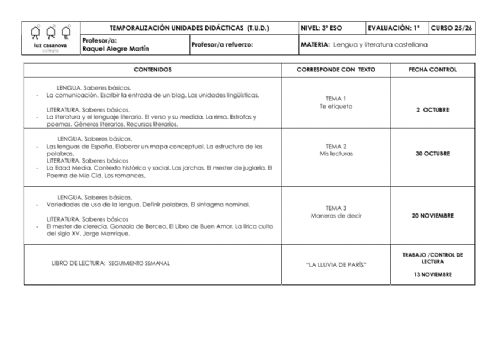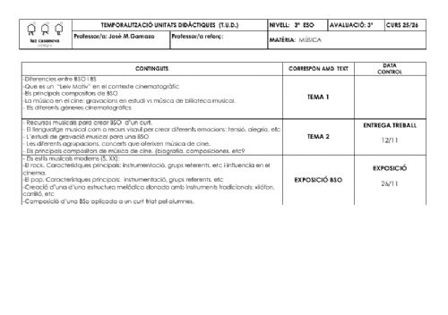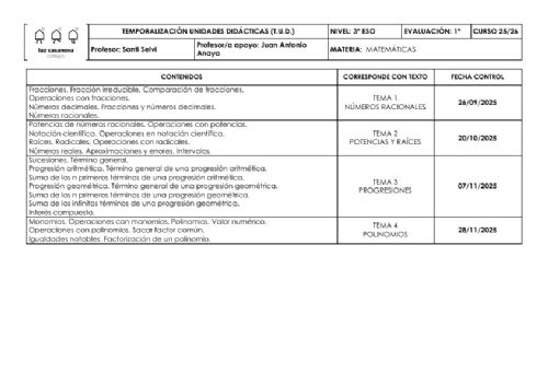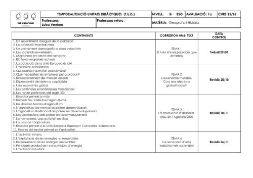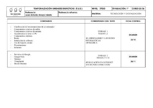 • Temporalizaciones de Unidades Didácticas